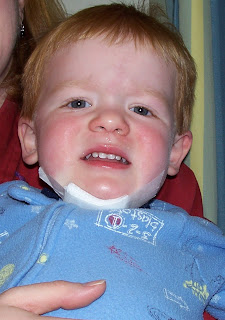 This is an obvious expression of how happy Austin is about this whole deal...he in fact is having a temper tantrum because he had to come in from outside where he has been spending much of his time lately as it has been pretty here in ATL - we have been building "stick walls" out of fallen branches and playing in the mud since it too has been raining!! Yippee!!